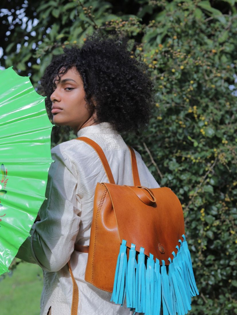 The AFRICAN Backpack by Samar Hakim is a handmade piece that combines heritage design with contemporary flair. Made from a unique mix of buffalo leather for strength and goat leather for softness and flexibility, this bag brings together durability and creative style.