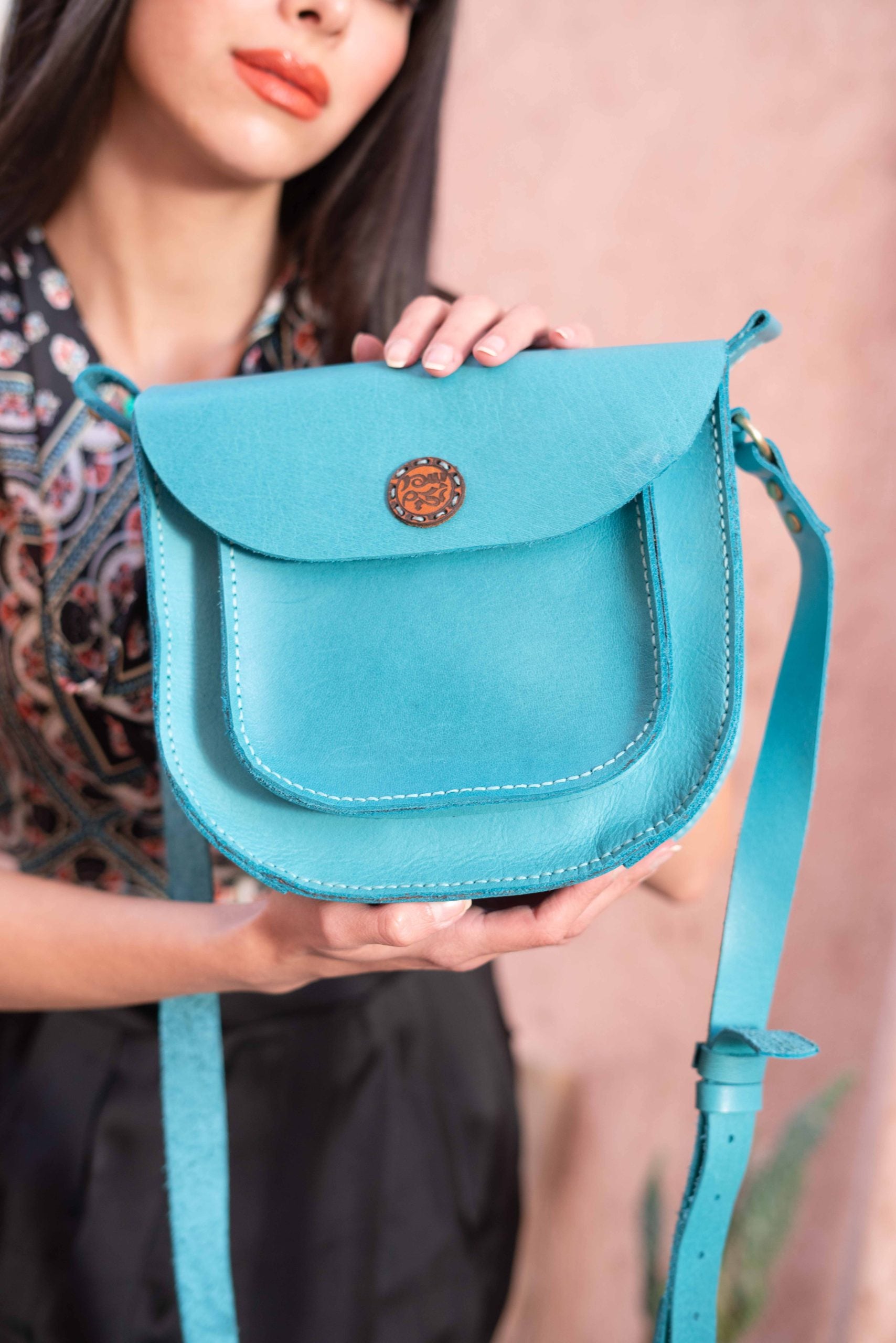 The CHIAVA Crossbody Bag by Samar Hakim returns in its most refreshing form β the Breeze Edition. Handcrafted from full-grain natural leather, this version glows in a vibrant turquoise blue that reflects the freedom of open skies and the calm of ocean tones.