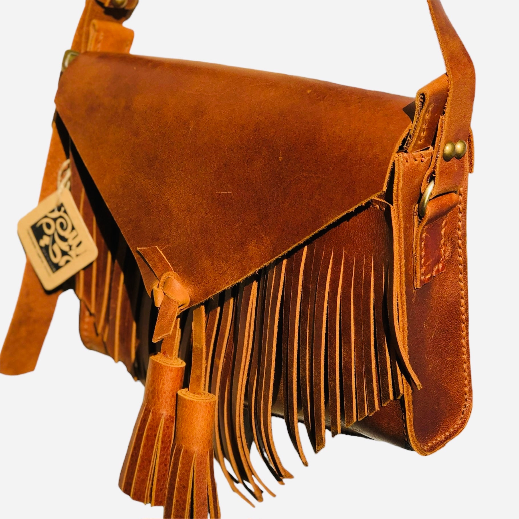 Featuring a one-piece body with cascading leather fringe, this bag blends softness and structure through the finest cow and goat leather.