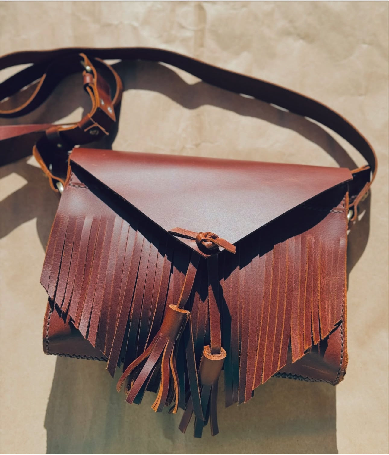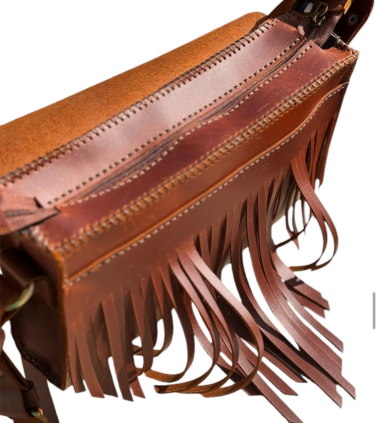 The Vintage Boho Fringe Purse from Samar Hakim adds a bold, free-spirited vibe to your look. Crafted from pure genuine leather, this crossbody bag is the perfect mix of vintage style and everyday practicality.