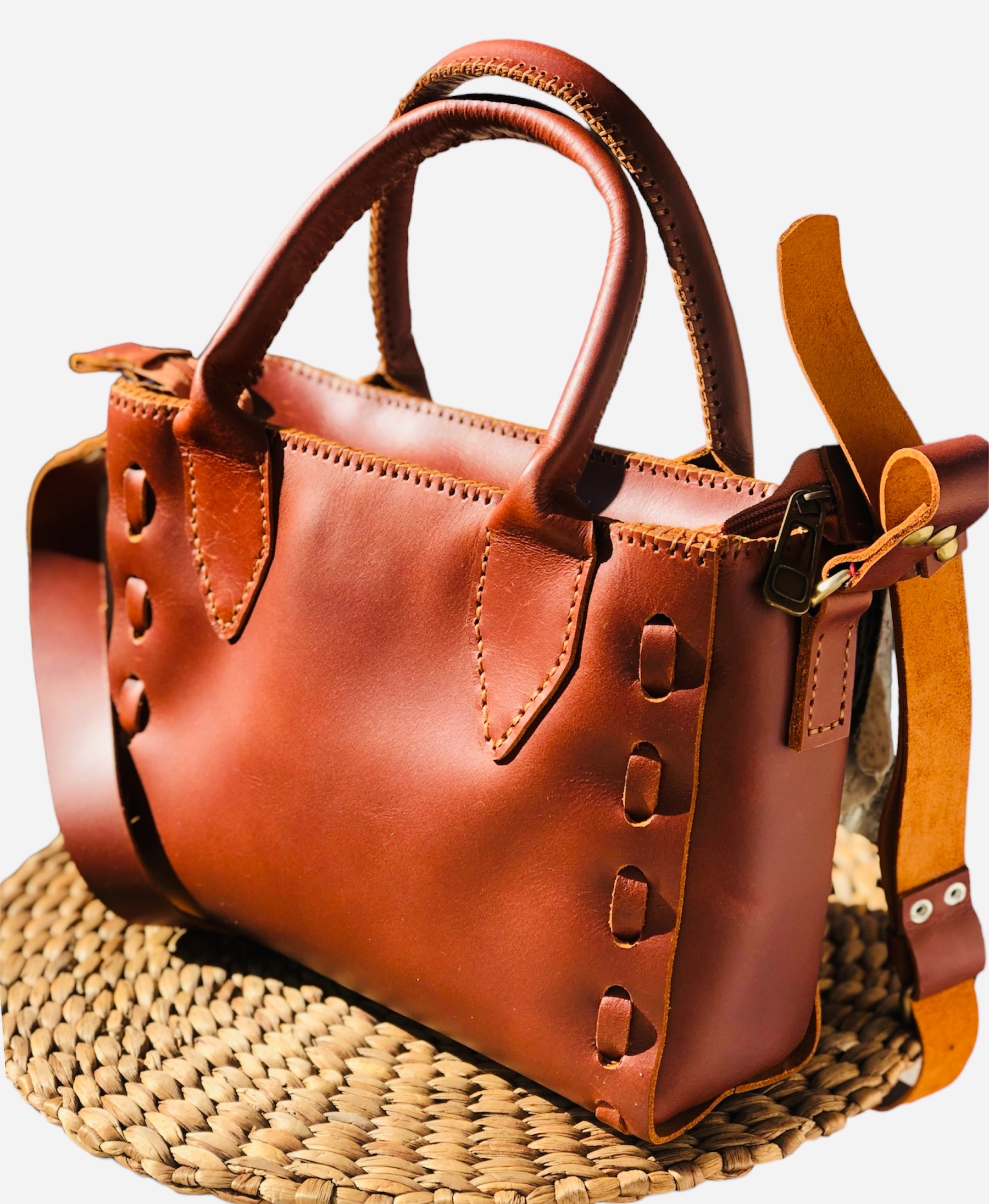 π€ Havan β A rich, warm brown tone with slight reddish undertones, evoking a natural, earthy elegance. The leatherβs smooth finish and handmade details enhance the bagβs artisanal character, making it both practical and stylish.
