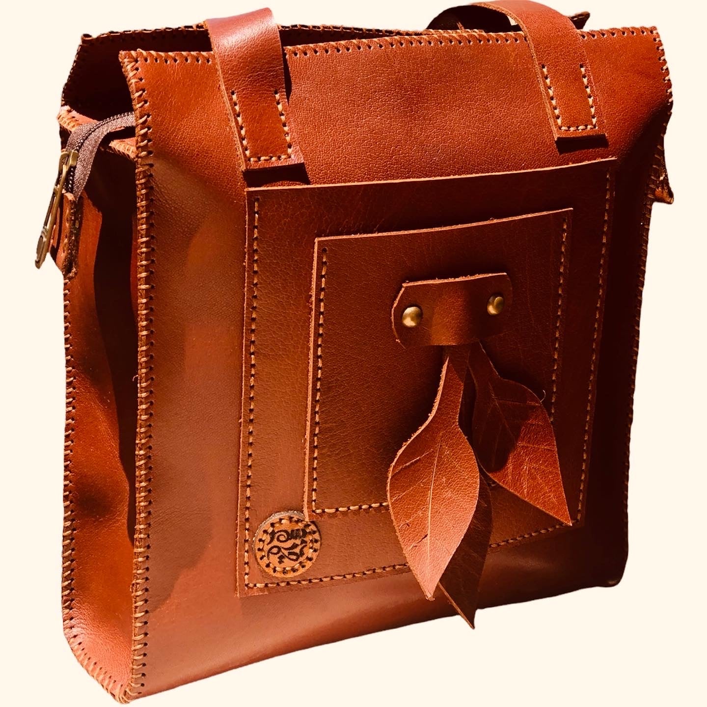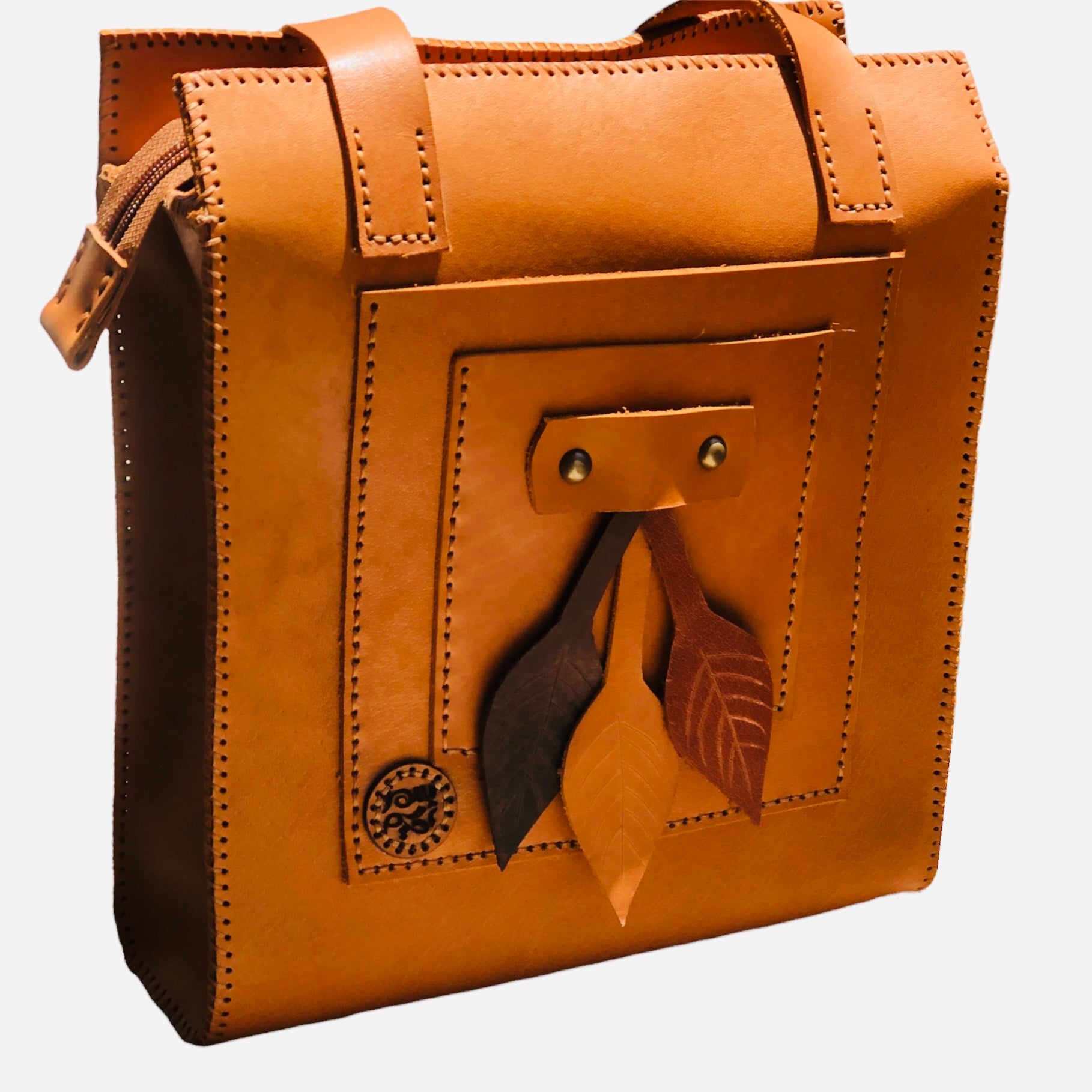 The LEAVES shoulder bag by Samar Hakim is a beautifully handcrafted piece made from premium full-grain leather. Designed with simplicity and function in mind, this bag features two front pockets for quick access and a main compartment spacious enough for your daily needs.