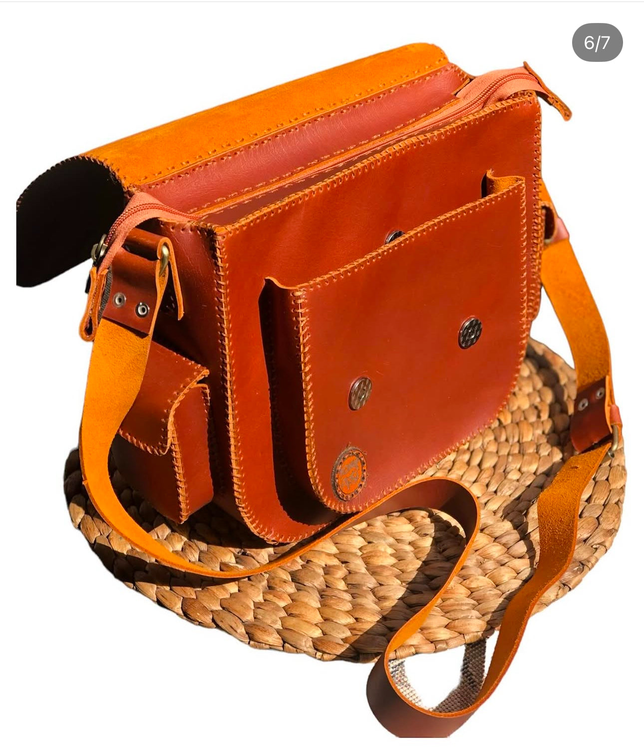 Designed for everyday use, the MEDWELL crossbody bag features a simple yet timeless silhouette. Crafted from full grain natural leather and fully handmade, it offers 3 functional pockets for maximum practicality and organized style. Whether you're heading to work or out for a casual day, this bag is a perfect match for comfort, durability, and classic charm.