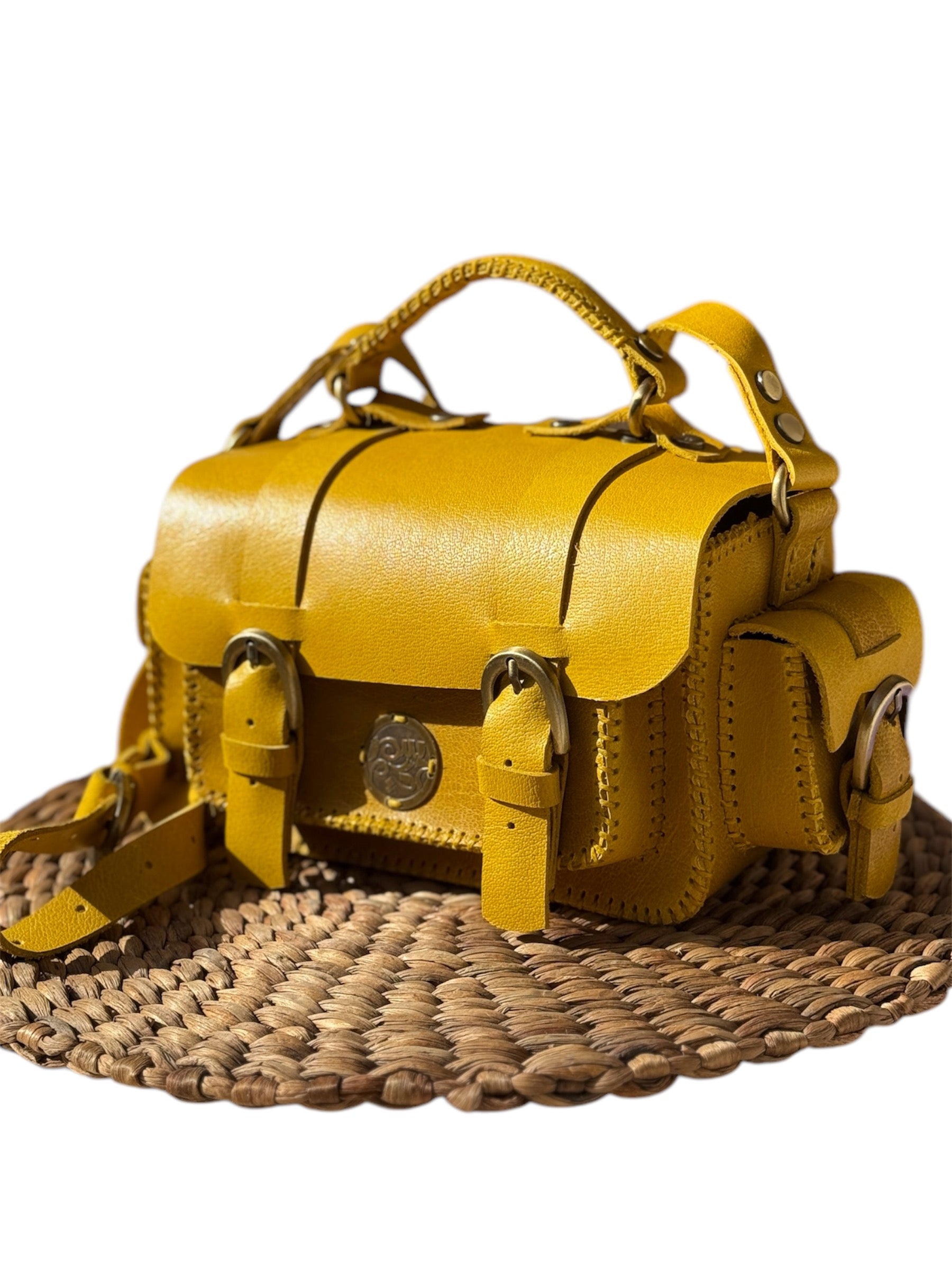 The TETORIAL is one of the most beloved handmade bags by Samar Hakim. Its compact size, multiple compartments, and striking Ochre Yellow color make it perfect for everyday functionality with a standout aesthetic.